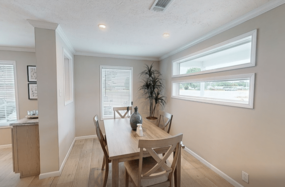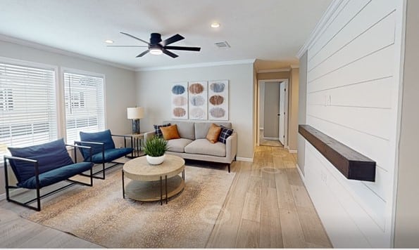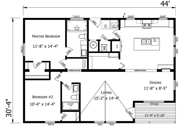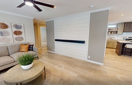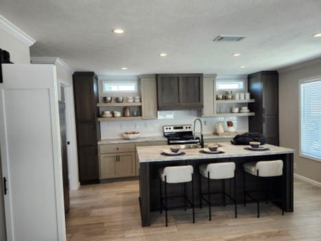 Check out this gem from Champion Homes! This is THE perfect size home, whether you are just starting out OR looking to downsize! A doublewide with only 2 bedrooms doesn’t come along often and Champion Homes has the perfect layout for this one. With the open floor plan, Butler’s Pantry with Built-In Microwave, Walk in Closets in Both Bedrooms, 72″ Shower in Master Bedroom, Upgraded Wood Cabinets, Shiplap Accent Wall, Transom Windows for extra light, 2×6 Walls and Full Drywall, this home is an incredible buy! Give us a call for more information on this home today.